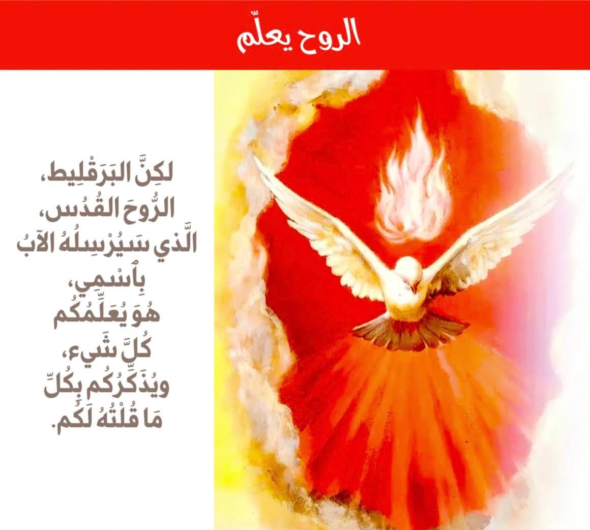 الأحد: الرّوح يعلّم: مِن إِنجيلِ ربِّنا يسوعَ الْمَسيحِ للقدِّيس يوحنَّا الَّذي بَشَّرَ العالَمَ بالْحَياة، فَلنُصْغِ إِلى بِشَارَةِ الْحَياةِ والْخَلاصِ لنفُوسِنَا (يو 14/ 21-27)