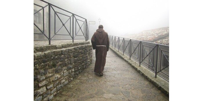– ثالثاً- يجب أن نبتعد من كل حركة تخالف الأدب في المشي والتخطر. أي لا نتقدم قدام من هو أكبر منا، متى مشينا معه، بل نتأخر عنه قليلاً، كما هي وصية أكثر الآباء. وليكن شكل مشينا برصانة وورع، ولا نضع، وقت مشينا، رداءنا على كتفنا، ولا نحدف بأكمامه إلى الوراء، ولا نكتف أيدينا إلى خلفنا، ولا نرفع صدرنا وحواجب أعيننا وننصب عنقنا. وجملة الكلام كل شيء يفعله أهل العالم من التنزه والتباهي والتخطر وقت المشي، فلنرذله بالتمام. وفي هذا المعنى قال القديس أفرام: جاهل من يمشي ويحرك ساعديه وكتفيه تحريكاً بألم، وعلامة نقص الأدب في الراهب، أن يشيل جانب مزرته شيلاً بألم. وقال أيضاً: تزين الثياب وعين طموحه وعنق منتصب ومنكبان مكشوفان ورجلان يسيران سيراً ألمياً، هذا يستدعي إلى الموت. وقال الأب أشعيا: إذا كنت تمشي لا تلتفت إلى هنا وهناك.