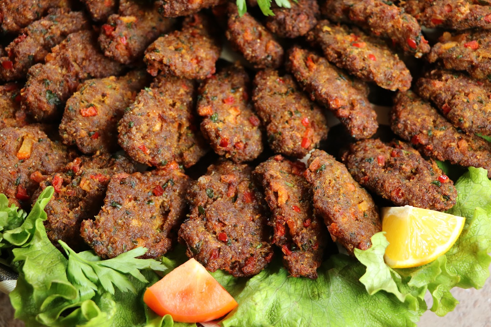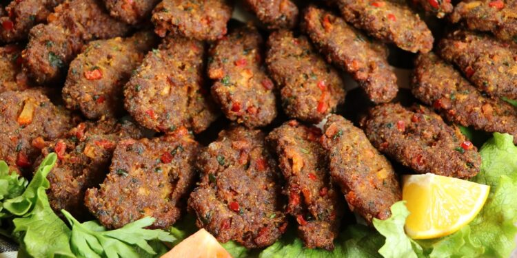 - يوضع الملح والبقدونس والبصل والكرافس والطحين فوق اللحم وتعجن معاً.