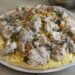 2. نتبلها بالملح والفلفل وندعكها بالبصل المبشور والثوم، ثم نضيف السماق.
