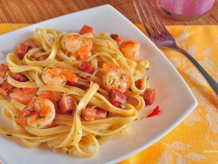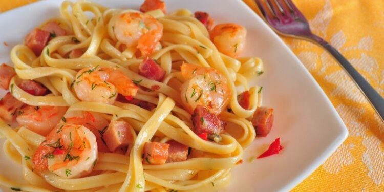 روبيان بانيه مع معكرونة اسباغيتي