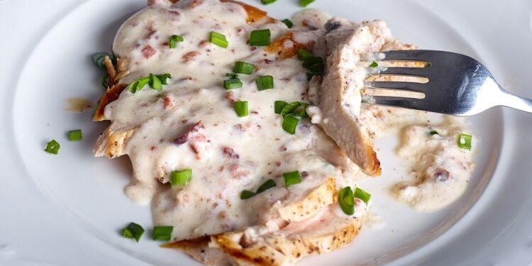 - تضاف الكريمة والخضر والدجاج وتترك الحلة على النار لمدة 5 دقائق مع التقليب المستمر حتى تتماسك الصلصة وتخلط.