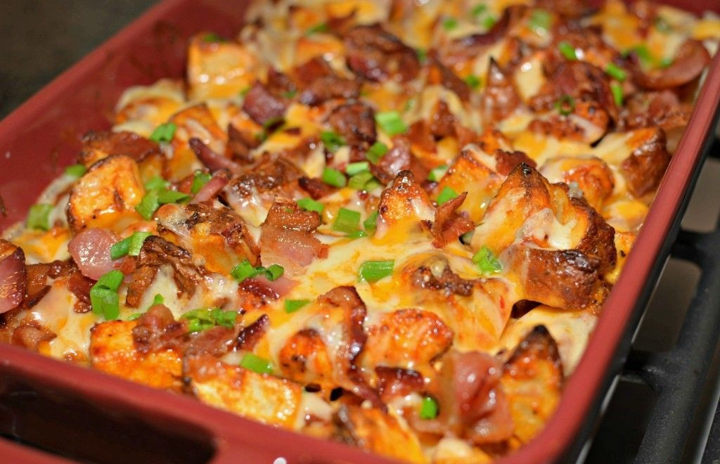 - يصب هذا الخليط على البطاطس والسوسيج والبصل فى طبق الفرن.