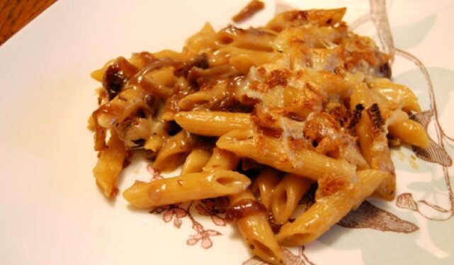 - نبشر البصل ونتبلة باالملح والفلفل ونتركة 5 دقائق مع المكرونة واللحم المفروم أيضاً.