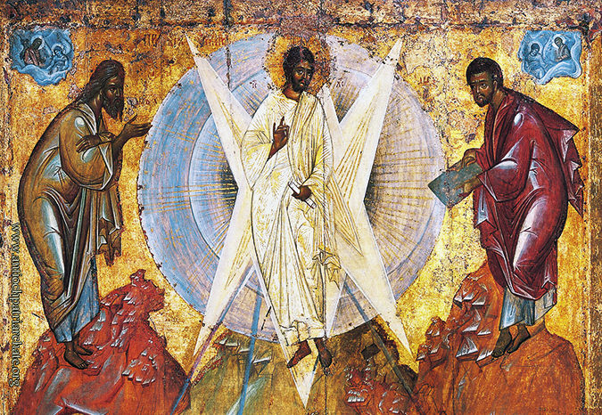 يخبرنا الإنجيليون الثلاثة متى ومرقس ولوقا عن حادثة التجلي فيقول القديس متى في الفصل السابع عشر: وبعد ستة أيام مضى يسوع ببطرس ويعقوب وأخيه يوحنا، فانفرد بهم على جبلٍ عالٍ وتجلّى بمرأّى منهم. وإذا موسى وإيليا قد تراءيا لهم يكلمانه. فقال بطرس ليسوع:” رَبِّ، حسن أن نكون ههنا، فإن شئت، نصَبتُ ههنا ثلاثَ مظال: واحدة لك وواحدة لموسى وواحدة لإيليا”. وبينما هو يتكلم ظلَّلهم غمام نيِّر، وإذا صوت من الغمام يقول:” هذا هو ابني الحبيب الذي عنه رضيت، فله اسمعوا”. فلما سمع التلاميذ هذا الصوت، أكبّوا بوجوههم، وقد استولى عليهم خوف شديد. فدنا يسوع ولمسهم وقال لهم:” قوموا، لا تخافوا”. فرفعوا أنظارهم، فلم يروا إلا يسوع وحده.