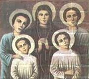 فأمر الوالي بتعذيب أولادها أولاً. فأنالوا بهم أمر العذابات أمام عينيها حتى أماتوهم، وكانت هي تشجعهم على احتمال العذاب من أجل المسيح الفادي الإلهي. ثم أمر الوالي بحبسها بعد أن أذاقوها من العذابات ألواناً وهي ثابتة في إيمانها. أخيراً أتوا بها إلى مكدونية حيث قطعوا رأسها فنالت إكليل الشهادة في أواخر القرن الرابع. صلاتها معنا. آمين.