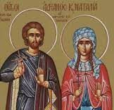 فعرفت ناطاليا امرأته بذلك فطارت فرحاً. ولما حان وقت استشهاده هرعت إليه، وسارت معه إلى الملك فسأله: هل أنت مقيم على جنونك؟ – أجابه الشهيد: