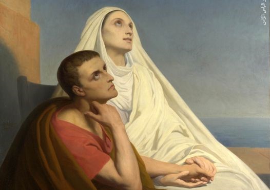 أما أمه مونيكا فطار قلبها فرحاً على اهتداء ابنها، ثم رقدت بالرب بين يديه.