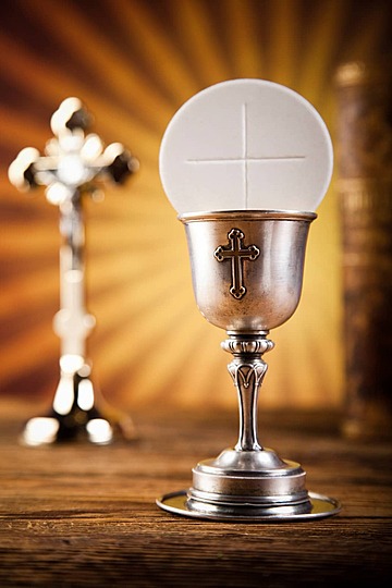 جَسَدُ سيّدِنا يسوعَ المسيحِ ودَمُهُ يُعطى لك لمغفرة خطاياك وللحياة الأبديّة.