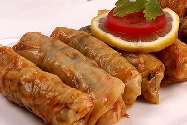 6. نقوم بحشو أوراق الكرنب المقطعة قطعا مناسبة وتوضع في الحلة.
