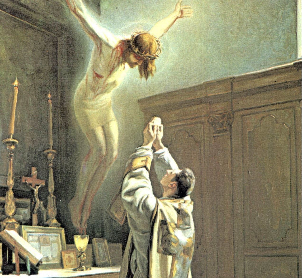في اليَومِ الَّذي قَبْلَ آلامِهِ المُحْيِيَة أخذَ الخُبْزَ بيَدَيهِ المُقَدَّسَتَيْن، وَبَارَكَ، وَقَدَّسَ، وَكَسَرَ وَأَعْطَى تَلامِيذَهُ قائلاً: خُذُوا كُلُوا مِنْهُ جَمِيعُكُم، فَهذَا هُوَ جَسَدي، الَّذي مِن أَجْلِكُمْ وَمِنْ أَجْلِ الكَثِيرِين يُكْسَرُ وَيُبْذَلُ لِمَغْفِرَةِ الخَطايا وَلِلحَيَاةِ الأَبَدِيَّة.
