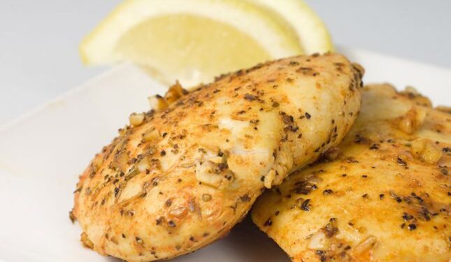 1. يتبل الدجاج جيداً مع الليمون والثوم الدمقوق.