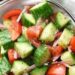 - يقطع الخيار قطع صغيرة ويرش عليه الملح والليمون ويصف في طبق.