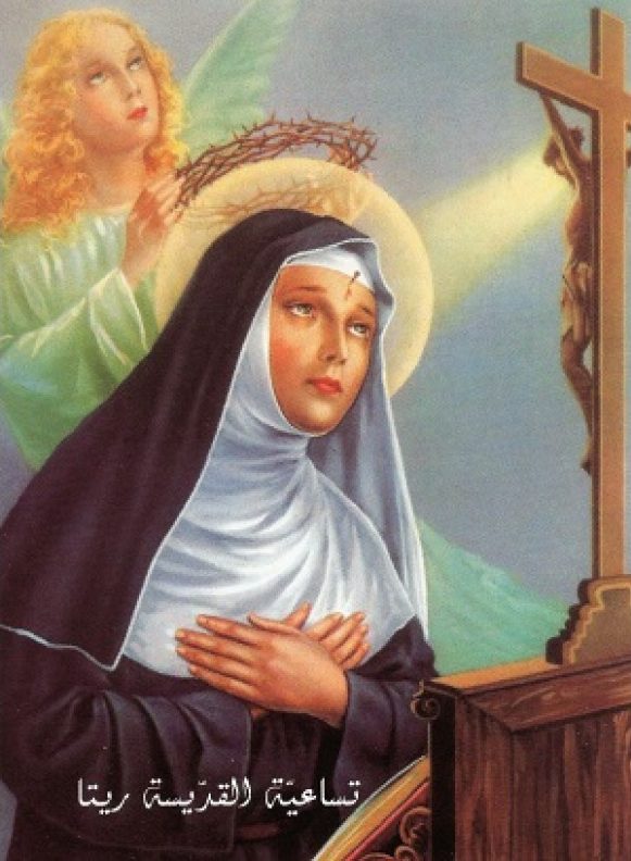 يا قدّيسة ريتا المجيدة، يا من خضعت لسيرة الحياة الزوجيّة بطاعة والديكِ وأصبحت مثال الزوجة المسيحيّة، ها أنا على قدميكِ فاتحًا لكِ قلبي لأنّي بحاجة لمساعدة الله وحمايتك.