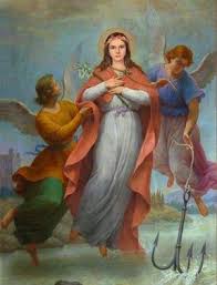 تنازلي أيّتها العذراء الممتلئة طيبة وعطفًا، واقبلي صلواتي المتواضعة ونوّليني تلك الطهارة التي ضحّيت من أجل نيلها بأمتع ملذّات العالم، هبيني قوّة الروح التي جعلتك تقاومين الهجمات الرهيبة، وامنحيني تلك المحبّة الملتهبة للربّ يسوع المسيح التي لم تقوى العذابات الرهيبة على إطفائها في داخلك. عساي وأنا ارتدي حَبْلك المقدّس وأقلّدك في أسلوب حياتك أن أفوز يومًا معك بالإكليل في السماء. آمين.