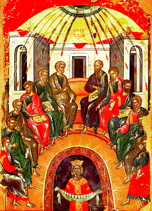 تجسّد هذه الأيقونة حلول الروح القدس على التلاميذ بشكل ألسنة ناريّة، على الأثر ابتدأ التلاميذ يشهدون للرّب دون خوف.