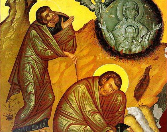 ”اليومَ رأسُ خلاصِنا. وإعلانُ السِّرِّ الذي مُنذُ الدُّهور. فإنَّ ابنَ اللهِ يصيرُ ابنَ البتول. وجبرائيلَ بالنعمةِ يُبشّر. لذلكَ نحنُ معهُ فلنهتِفْ نحوَ والدةِ الإله. افرحي أيّتها المُمتلئةُ نعمةً الرّبُ معكِ“. آمين