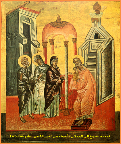أيقونة دخول السيّد إلى الهيكل تُتَرجم ببساطتها ما كتبه الإنجيلي لوقا في الإصحاح الثاني من إنجيله.