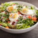 7.  يزين الطبق بالحبق المفروم والنعناع الطازج ويقدم بمثابة سلطة ساخنة.