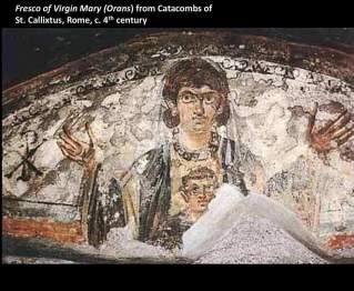 كما هذا الشكل مِن ​العذراء​ المتضرّعة وُجِدَ أيضًا في أيقونة الصعود كما تظهر مثلًا قارورة مونزا Monza مِن القرن السادس ميلادي و​إنجيل​ رابولا الذي يعود ل٥٨٦م.