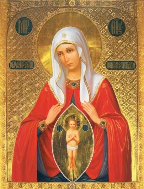 هذا الرمز هو أفضل رفيق للمرأة المؤمنة أثناء الحمل والولادة. على هذا الرمز تم تصوير العذراء في ثوب أحمر، نظرة واحدة على الوجه الهادئ للوالدة الأم يعطي الأم  قوتها ، وستصبح صلاتها أكثر صدقاً.