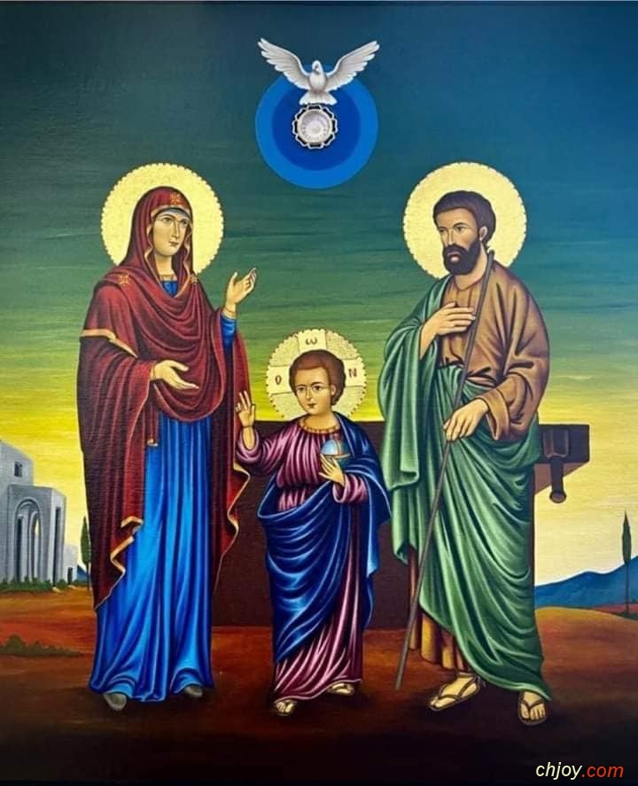 في أيقونة العائلة المقدسة: القديس يوسف مع مريم العذراء والسيد المسيح، لم تكن أسرة مكونة بالجسد! بل جمعتها العناية الإلهية، من أجل إنجاز المسيح لعمله الخلاصي، لافتداء الجنس البشري.