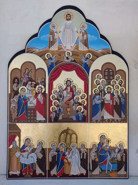 ايقونة قبطية حديثة للأعياد السيدية السبعة الصغرى في لوحة واحدة