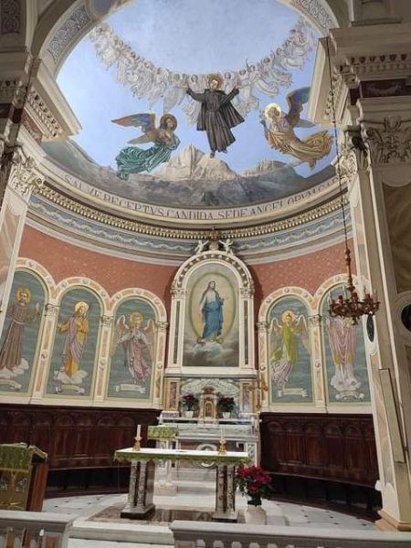 تصميم الكنيسة الجديدة أكمله المهندس المعماري جيو بونتي أوجينيو أبروزيني ، يضم أمثلة رائعة للفن المسيحي المقدس للفنانين المعاصرين مثل إنريكو أكاتينو ، أوغولينو دا بيلونو ، غيدو ستراززا ، تيتو أمودي ، نينو دي سيمون.