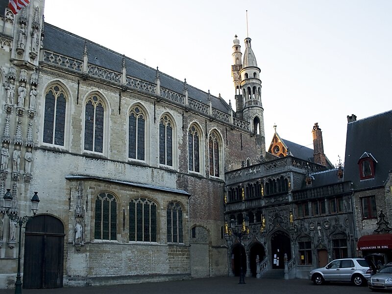 تعمر أسقف الكنيسة بجمال فريد من نوعه لكونها مُزينة بالألواح الخشبية المزركشة، التي تضفي روعة في المعمر الأوروبي في العصور الوسطى، فهذه الكنيسة تحمل قدسية خاصة بقلوب سكان المدينة بلجيكية لاحتفاظها بدماء السيد المسيح المباركة، الذي يقال أنه تم نقله من أرض المقدس خلال الحروب الصليبية إلى الكنيسة البلجيكية، لتبات مزاراً للمسيحيين من كافة أنحاء العالم.