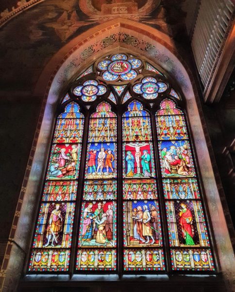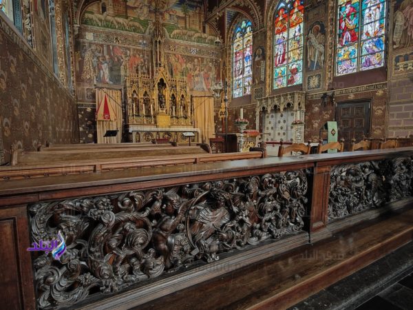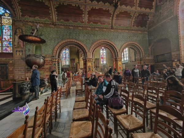 تتميز الكنيسة البلجيكية ببهو كبير يتخلله عدد من المقاعد الخشبية العتيقة التي يصل عمرها لمئات السنين، يجلس عليها عدد من الزوّار متعددي الجنسيات ليتلو الصلوات ويوقدون الشموع بقدسية شديدة، أمام مقام من الصلبان الذهبية التي تتوسط الكنيسة ويحاوطها حواجز حمراء لعدم الاقتراب منها.