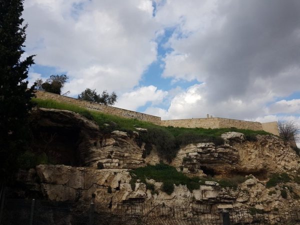 وقد بدا التقليد بتسميته ” جبل الجلجثة ” منذ القرن الرابع، فاقيمت على الموضع كنيسة القبر المقدس. أما فكرة مطابقة شكل التل للجمجمة فلم تنشأ إلا حديثا. وقد جمع ” جوته ” (Gothe) ما بين السببين الثاني والثالث في فكرة واحدة معتبرا أن هناك مرتفعا ما يشبه الجمجمة، درج الناس على النظر إليها على اعتبارها جمجمة أول إنسان. أما أغرب الاعتقادات، فهو ما أتى بها الجنرال غوردون، من ان التشابه مع الجمجمة هو في محيط المنطقة كما يتضح من أول وهلة عند النظر إلى خريطة أورشليم.