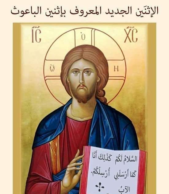 وَلَمَّا كَانَتْ عَشِيَّةُ ذلِكَ الْيَوْمِ، وَهُوَ أَوَّلُ الأُسْبُوعِ، وَكَانَتِ الأَبْوَابُ مُغَلَّقَةً حَيْثُ كَانَ التَّلاَمِيذُ مُجْتَمِعِينَ لِسَبَبِ الْخَوْفِ مِنَ الْيَهُودِ، جَاءَ يَسُوعُ وَوَقَفَ فِي الْوَسْطِ، وَقَالَ لَهُمْ: «سَلاَمٌ لَكُمْ!»