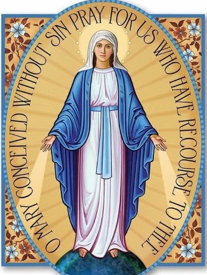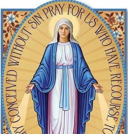في 27 تشرين الثاني عام 1830، خلال فترة التأمل في الكنيسة ترى القديسة كاترين لابوريه من راهبات “أخوات الرحـمة للقديس منصور دي بول” في فرنسا ، السيّدة العذراء في إطار ذهبي بشكل أيقونة بيضاوية، كُتِبَ على هذه الأيقونة بأحرف ذهبية “يا مريم التي كُـوِّنْتِ بلا خطيئة، صلّي لأجلنا نحن الملتجئين إليكِ”