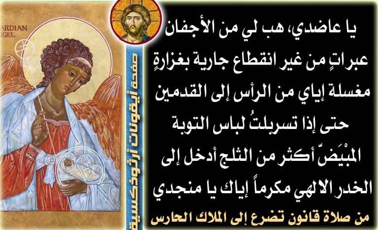 أيها الحارس الساهر لنفسي ،الذي قد مُنِِحتُه من لُدن الله، أيها النصير والمرشد لحياتي، أسبّحك يا ملاك الله الضابطِ الكُل الإلهي .