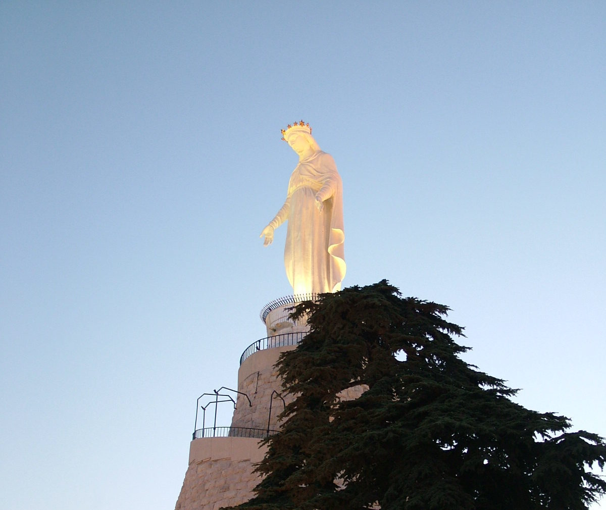 تجتذبهم إليها بيدَيها المنبسطَتَين نحو العاصمة بيروت لتباركهم، و لتفيض عليهم و على المدينة و الوطن النعم السماوية.