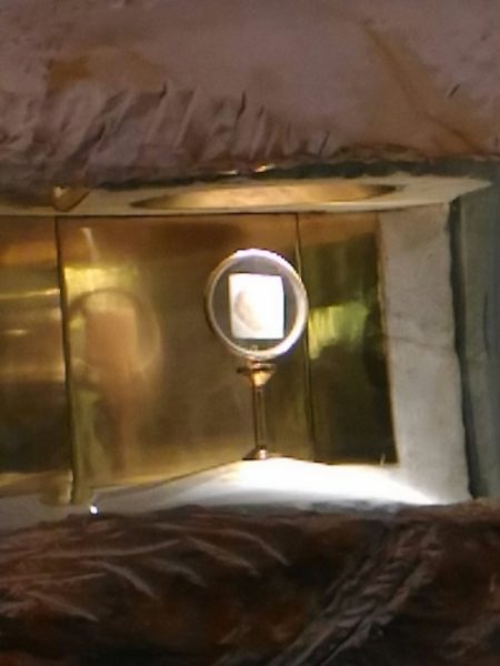 تم تجديد الحنية الرئيسية في عام 1981 من قبل المهندسين المعماريين كابروني، جينكو، سريميري. المذبح العالي، الذي صممه جوزيبي مارتينينغي، مزين بنقوش العشاء الأخير لإيروس بيليني ويحافظ على “جسد المسيح”، العبادة التي اعترف بها بونيفاس التاسع. المفروشات من عمل النحات المعاصر الكبير جياكومو مانزو. المسكن البيضاوي ملفت للنظر، مع وردة في السنابل الوسطى من الذرة والكروم وصليب على شكل سعف الزيتون. اللوحة الجدارية للعشاء الأخير من تصميم لويجي فيلوكامو، والزجاج الملون للمعجزات الإفخارستية لأرماندو ماروكو. وتغطي المنطقة الوسطى من الحرم قبة حيث رسم الرسام لويجي مونتاناريني الحمامة ومجد القديسين الأوغسطينيين. تم رسم لوحة جدارية على حنية المدخل بواسطة سيلفيو كونسادوري في عام 1956، والتي تظهر موكبًا من المؤمنين القادمين لعبادة الصليب، وتتضمن على اليسار صورة ذاتية للفنان، مع عباءة خضراء وكتاب أحمر في يده. على الجانبين مذابح سانت لوسيا والقديس يوسف.
