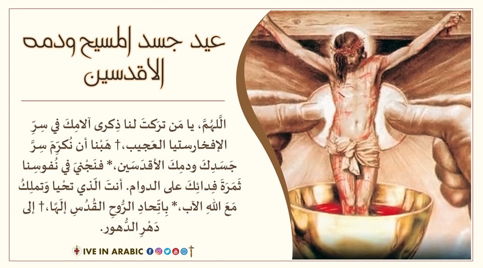 فعيد اليوم هو الإحتفال الشّعبي والعلنِي الّلائِق ببقاءِ الرّبِّ العجيب بيننا. ونحن بخروجنا معه على الشّوارع لا نريد المظاهرات والمطالبة بالحصول على حقوق مهضومة، بل لِنُعبِّر له عن حبنا واحترامنا وتقديرنا الجماعي. وخاصّة لنعلن له عن إيماننا به، هو الحيّ اللامنظور في القربان الّذي يُغذِّي حياتنا الرّوحيَّة. نعم هو قوتنا ورفيق حياتنا. وكم هو مؤثّر لنا أن نسمع من الإنجيل تأكيده: “أنا الخبز الحيّ النّازل من السّماء. من يأكل من هذا الخبز يحيى إلى الأبد” (يو 51:6). هو غذاؤنا الرّوحي الّذي رَمَز إليه رغيف الخبز، الّذي فاجاَ به ملاكٌ من السّماء النّبيّ إيليّا، وأمره أن يأكل منه ويشرب من جرّة الماء إلى جانِبِه. وهكذا كان. فمن بعد ما أكل إيليا من هذا الخبز وشرب من الماءِ الحيّ، قدر أن يسير مدّة 40 يوما و40 ليلة حتّى وصل جبل الكرمل، جبل الرّب، دون أن يشعر بالجوع والعطش ودون أن تخور قِواه (1 ملوك 19: 4-8).
