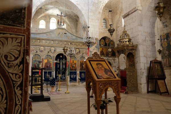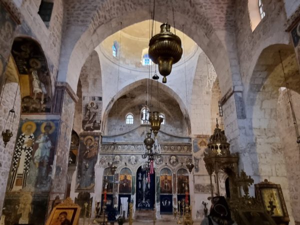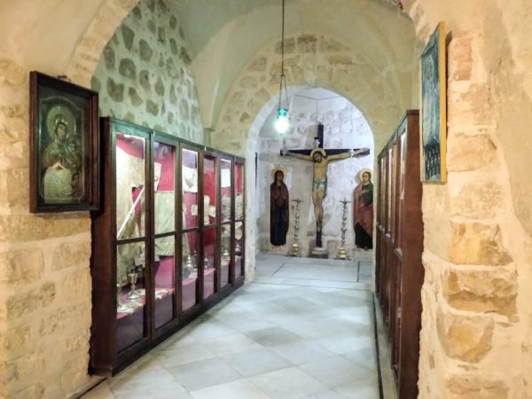 على بعض الجدران أيضاً مرسومة صور لسقراط وأفلاطون وآخرين والذين يُعتبرون حسب تقليد الكنيسة “مسيحيون قبل المسيح”. بناء مهم في الدير هي الكنيسة الصغيرة المُكرسة على إسم القديس يوحنا الدمشقي.