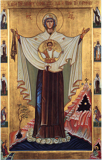 أيقونة والدة الإله ملكة بهاء الكرمل (16 تموز) – شرح الايقونة