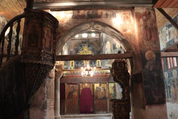 يزدان الجداران الطويلان: الشمالي والجنوبي بأقواس من الطوب في الجزء الأسفل ونافذة كبيرة بجانب القبة على شكل قوس مع أعمدة في وسط كل منهما. هناك نوافذ فوق الأقواس على الواجهتين الشمالية والجنوبية. أما القبة، فهي مزينة بالسيراميك، وفيها ثمانية شبابيك، شباك لكل جانب. اللوحات الجدارية من العصور الوسطى تلفت على مر السنين، ولم يتبقى منها سوى بعض الفتات.