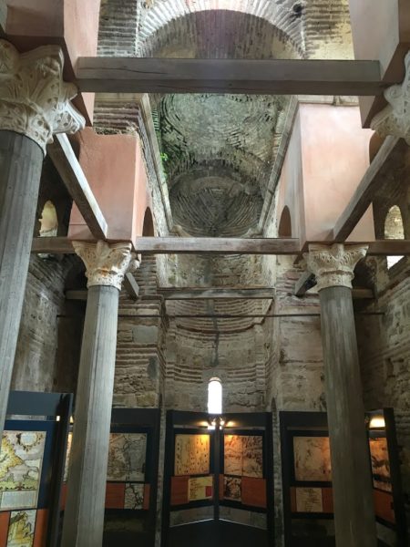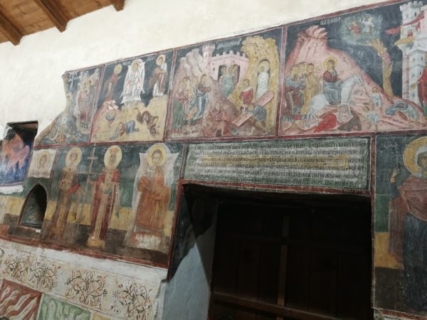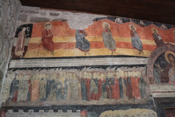 يزدان الجداران الطويلان: الشمالي والجنوبي بأقواس من الطوب في الجزء الأسفل ونافذة كبيرة بجانب القبة على شكل قوس مع أعمدة في وسط كل منهما. هناك نوافذ فوق الأقواس على الواجهتين الشمالية والجنوبية. أما القبة، فهي مزينة بالسيراميك، وفيها ثمانية شبابيك، شباك لكل جانب. اللوحات الجدارية من العصور الوسطى تلفت على مر السنين، ولم يتبقى منها سوى بعض الفتات.