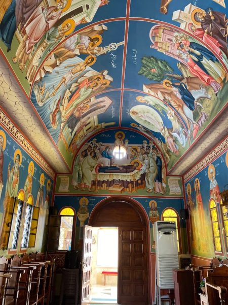 تشبه كنيسة الدير من حيث الشكل كنيسة سوريتي في اليونان، فهي على شكل صليب، ولها صحن رئيس طويل وضيق، وتعلو الهيكل والمذبح قبة كبرى رئيسة. أما جناحا الكنيسة فتكثر فيها المقاعد الخشبية المخصصة للراهبات. كما تتميز الكنيسة برسومات جدارية و أيقونات عجائبية مقدسة، وقلالي للراهبات، وبناء لاستقبال الزوار، ومنزل صغير لصاحب الغبطة.