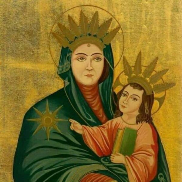 (هذه الأيقونة لسيدة التلة العجائبية بيد الإيقونوغراف كريستين حبيب الداية من دير القمر .)