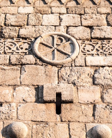يحمل باب كيسان على طرفَيْه نقش XP كرمز حجريّ يُعدّ اختصارًا لكلمة خريستوس باليونانيّة التي تعني اسم المسيح، وهو الرمز نفسه الذي ظهر للملك قسطنطين في السماء قبل مواجهته أعداءه وانتصاره عليهم، الأمر الذي أدّى إلى اعتناقه المسيحيّة.