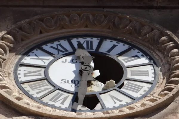 ساعة كاتدرائيّة مار الياس المارونيّة في حلب قبل ترميمها
