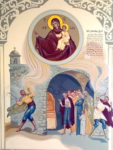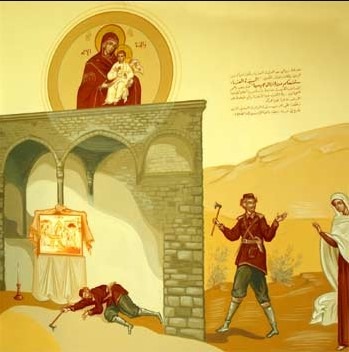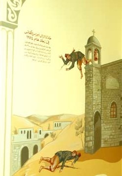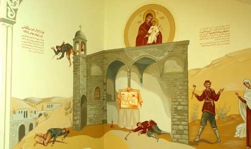 رسم حائطي في الكنيسة لحادثة الزلزال
