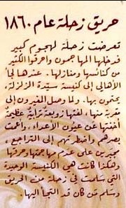 حدث زلزالٌ قويٌّ في العام 1759، غرقت مدينة بيروت على أثره وتضرّرت مدينة بعلبك الّتي كان ما يزال معبدها قائمًا بأعمدته كاملةً مع الهيكل حتّى ذلك الحين. يُذكر أنّ شكلها الحالي صار عليه بعد الزلزال. أما زحلة فكانت بلدةً صغيرةً وكنيسة السّيِّدة كانت أعلى بناءٍ فيها. فلما وقعت الزلزلة تشقّقت الأرض خلف الكنيسة وزحلتِ التربةُ باتجاه الكنيسة، ولمّا تتوقّف إلا بعجيبة بعدما اصطدمت بالكنيسة وطمرت جزءًا من حائطها الغربي. إذ ذاك توقّفتِ الهزّاتُ الأرضية وسلِمت كلّ المنازل من تأثير الزلزال، وأيقن أبناء زحلة أنّ كنيسة السّيّدة حمتهم منه وأوقفتْه، فتوافدوا إليها شاكرين العذراء على حمايتها لهم.
