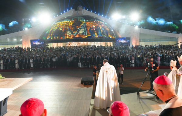 طلب البطريرك الراعي من الموفد البابوي، سيميرارو تلاوة رسالة البابا فرنسيس. فقرأها باللغة الإيطالية. ثمّ قام المطران نفّاع بتلاوتها مترجمة الى اللغة العربية. وجاء فيها: «ترحيباً برغبة أبينا الكاردينال بشارة بطرس الراعي بطريرك أنطاكية وسائر المشرق والعديد من الأخوة في الأسقفية والعديد من المؤمنين بعد حصولنا على رأي مجمع دعاوى القدّيسين، مع سلطتنا الرسولية، نحن نقبل أنّ خادم الله المكرّم البطريرك اسطفان الدويهي من إهدن، وادي قاديشا- لبنان، البطريرك الماروني لإنطاكية وسائر المشرق، (علا التصفيق) كالراعي الصالح قاد شعبه بعيون جديدة بنورٍ سماوي وعطايا كارزماتية، منظّماً الليتورجيا، كاتباً تاريخ الشعب المضطهد، واضعاً حماسته في خدمة وحدة المسيحيين والرهبانيات وخلاص المظلومين والفقراء، فليُطلق عليه من الآن فصاعداً، لقب «طوباوي».