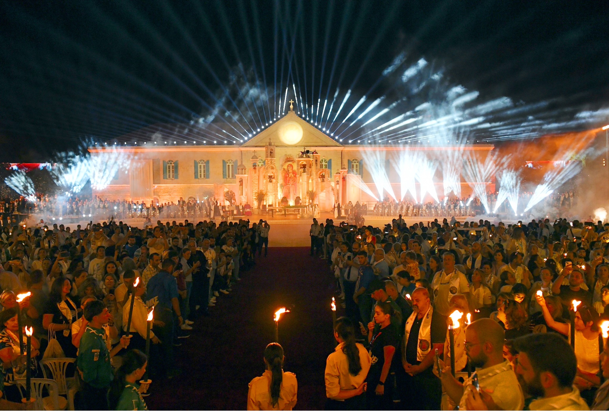 انطلق الاحتفال على وقع ترنيمة “مجد لبنان أعطي له”.