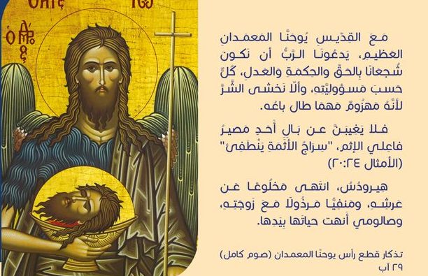 في مناظراتنا ومقاراباتنا حول القضايا العامة السياسية والدينية والسلوكية الأخلاقية … غالباً ما نقف وراء ستر “إعلان حقيقة ” ما لنستهدف آخرين لا نستسيغهم. عندها لا نكون أنبياء عصرنا و لا نارنا نار العنصرة بل نار كبرياء بابل…وسيتهاوى برجنا! من يوحنا المعمدان الشاهد والشهيد فليلفت انتباهنا اليوم الأمانة للحقيقة بتجرد من دون خلفيات انتقامية. الحقيقة والمحبة لا يتناقضان ولا ينقسمان و لكن أمام قبولهما موحدين سيظل البشر قسمين… في هذه الأثناء، يبقى الثناء لمن – كالسيد – مستعد أن يقلب طاولة تجار الهيكل و- كالسيد – يكون أيضاً على استعداد أن يموت من أجلهم!!!